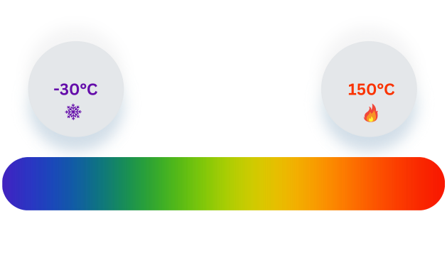 Wide temperature range from (-) 30˚C to (+) 150˚C